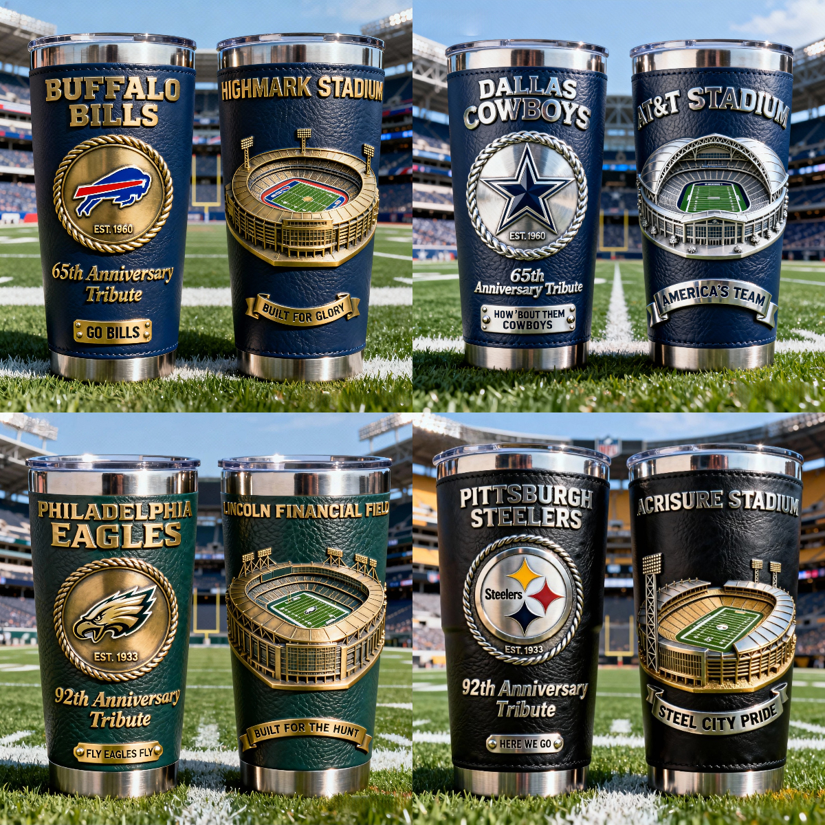 🏟️ CEngineered for Endurance, Etched with Legacy. Built with premium, double-wall vacuum insulation to lock in temperature. Adorned with your team’s emblem, anniversary logo, and an intricate stadium engraving in authentic colors.