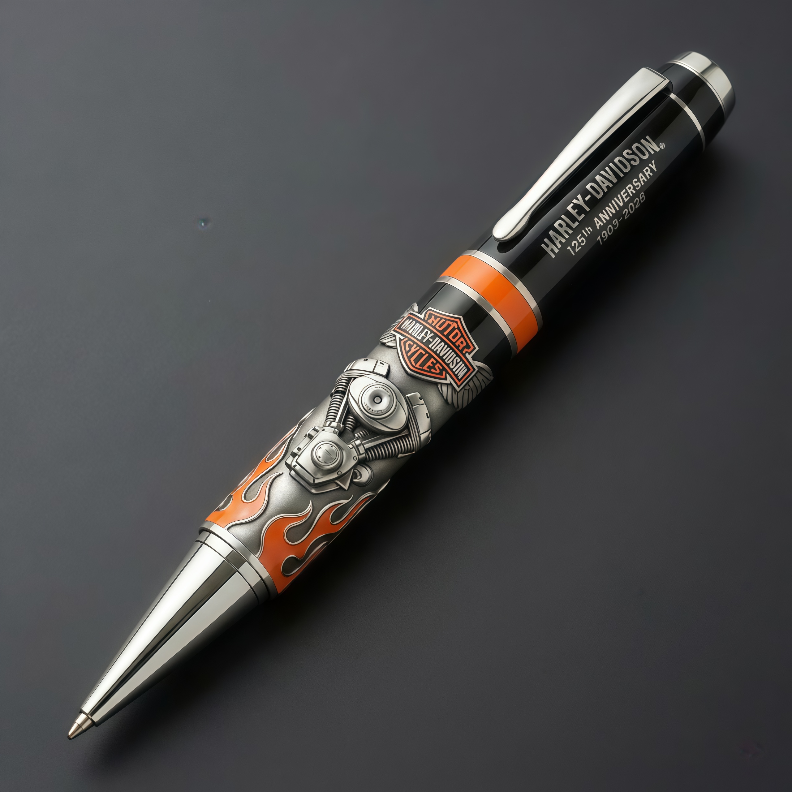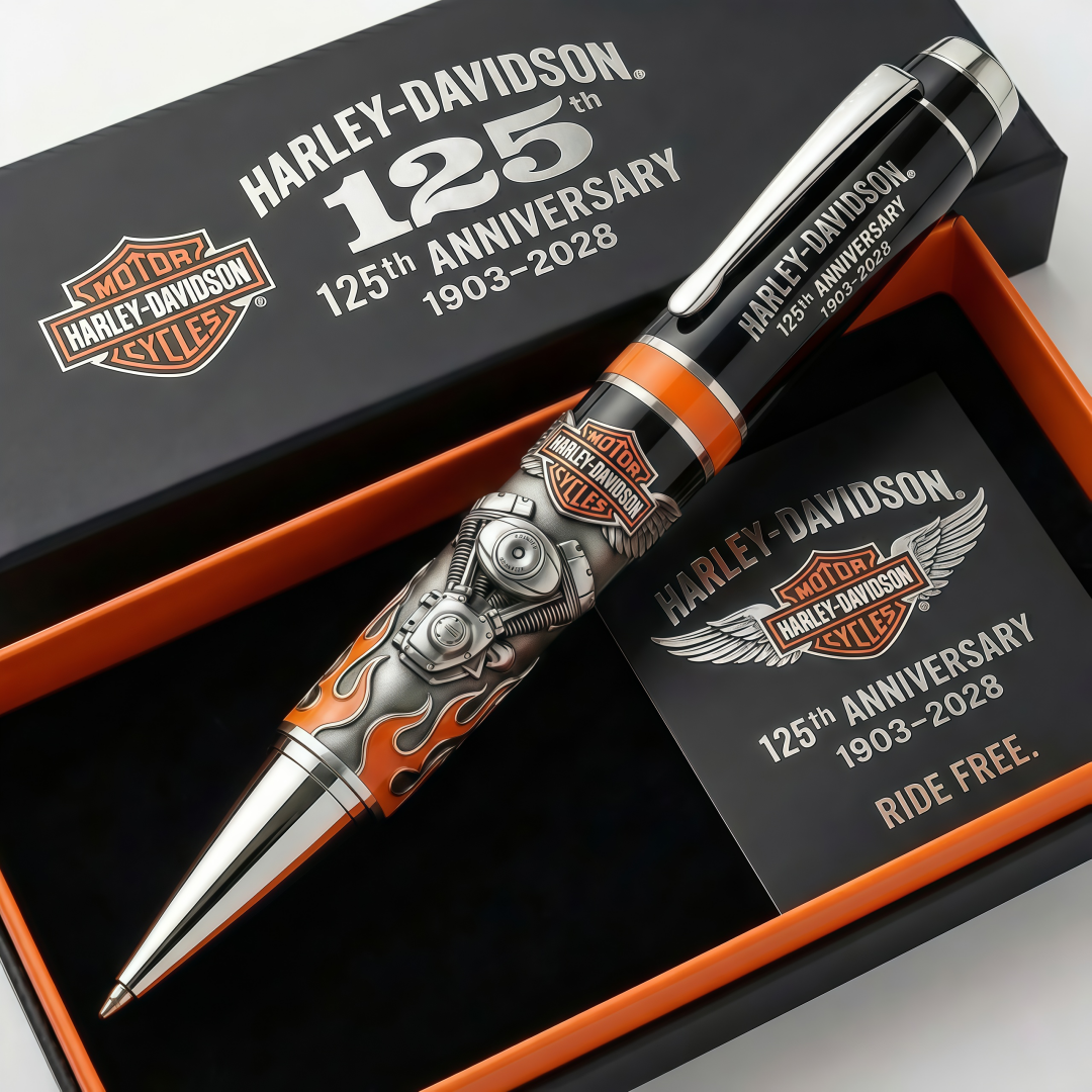 🏍️⚡️🔥 Since the first motorcycle roared to life in Milwaukee back in 1903, Harley-Davidson has defined a culture of rebellion, resilience, and the pursuit of the horizon, and this high-performance writing instrument honors that monumental 125-year odyssey with unmatched elegance and "Full Throttle" flair.