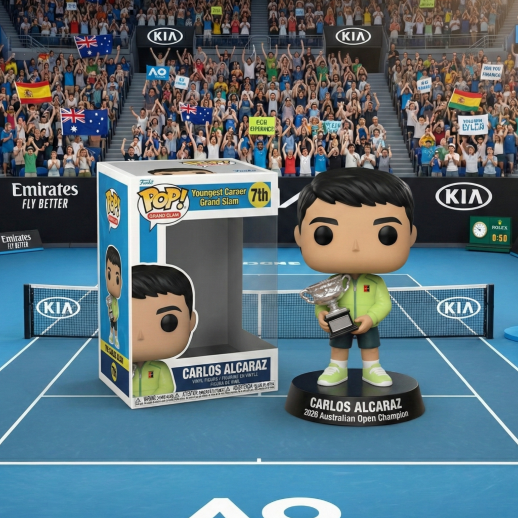 🏆Celebrate the rise of a tennis legend with the Carlos Alcaraz 2026 Australian Open Champion Doll! This exclusive Funko Pop!🎉