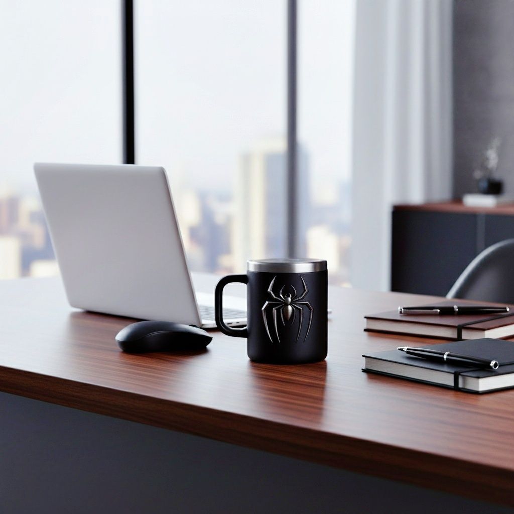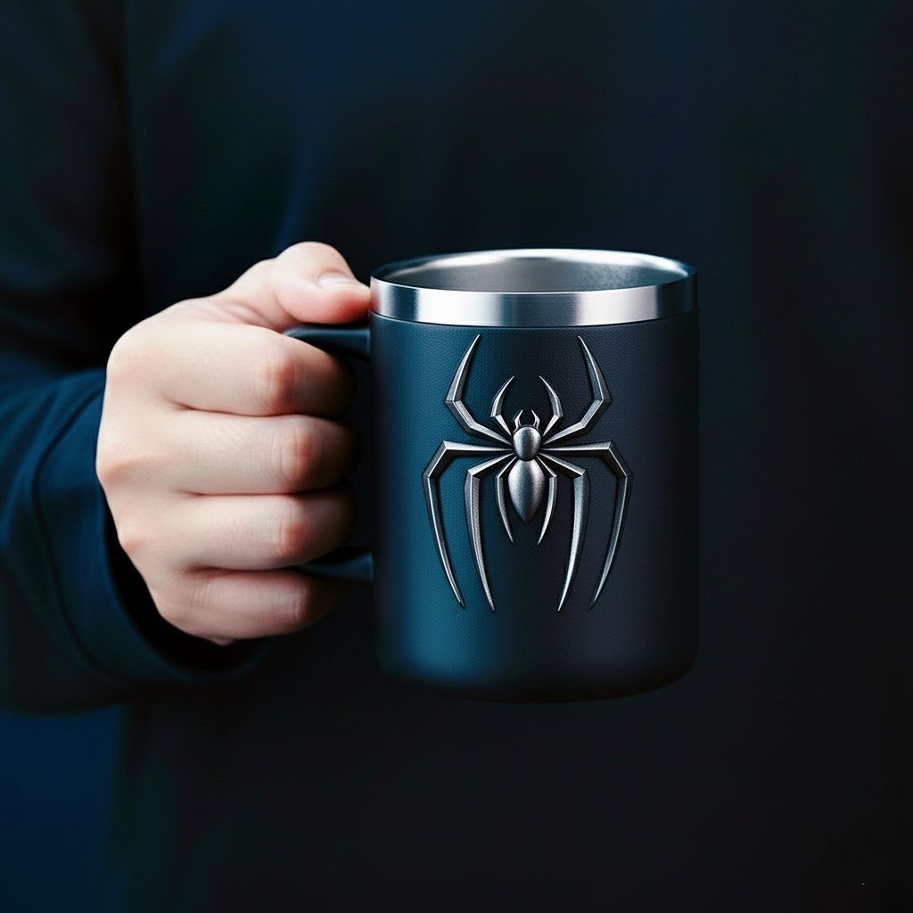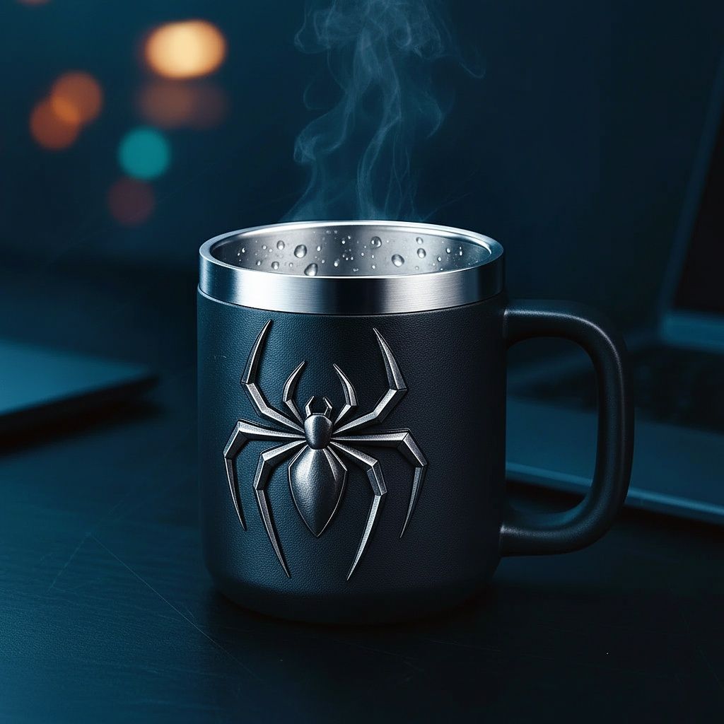 🕷️ Black Widow Steel Thermal Mug | 3D Metal Spider Emblem | Premium Office Coffee Cup