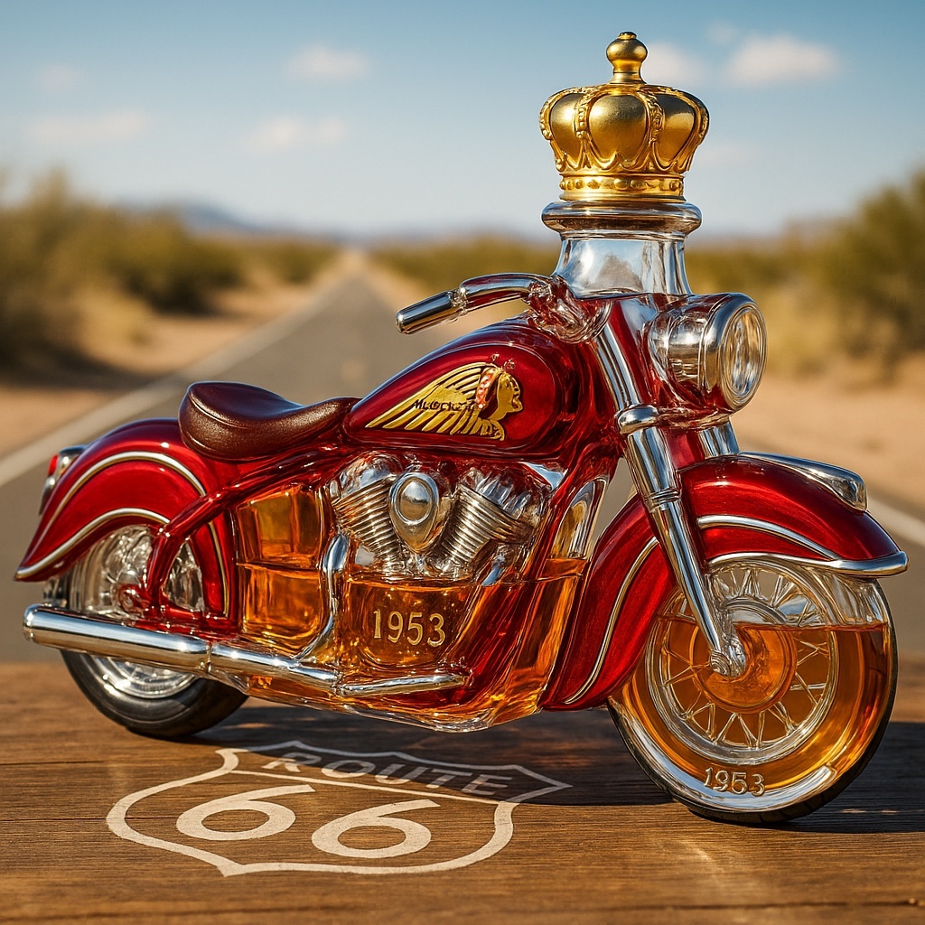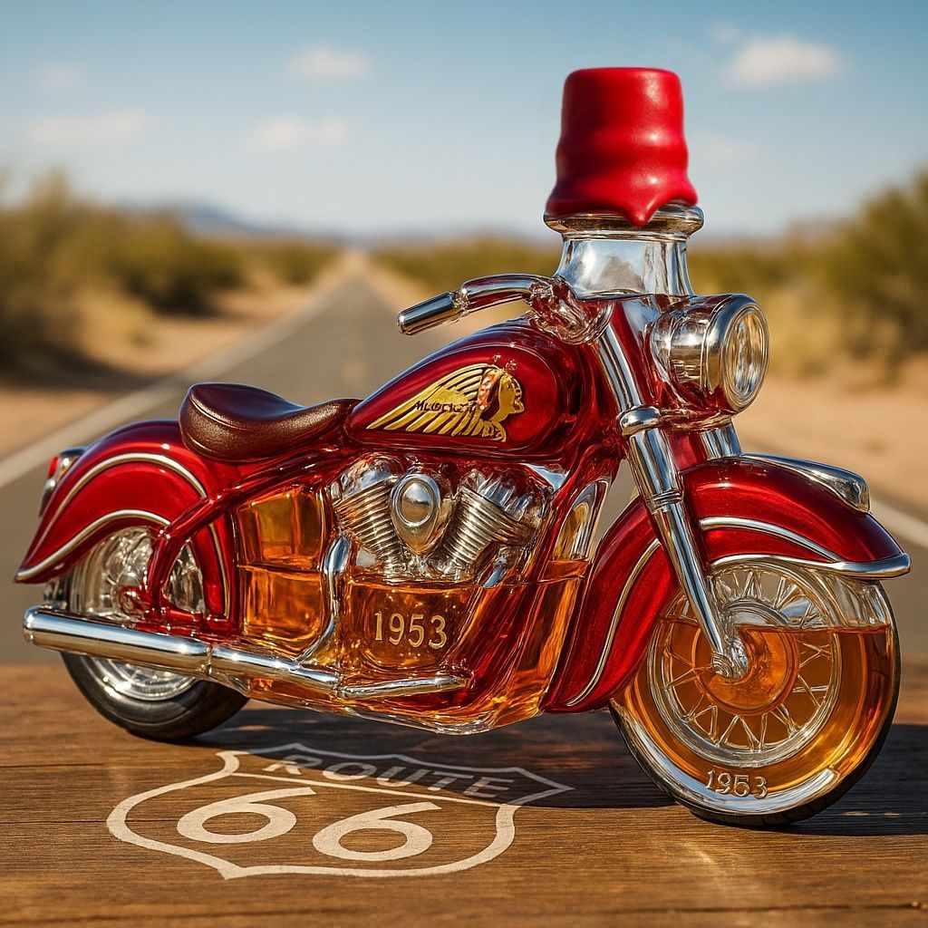🏍️🥃 Use this 1953 Indian Chief Motorcycle Whiskey Bottle to celebrate the legacy of American road freedom and craftsmanship.