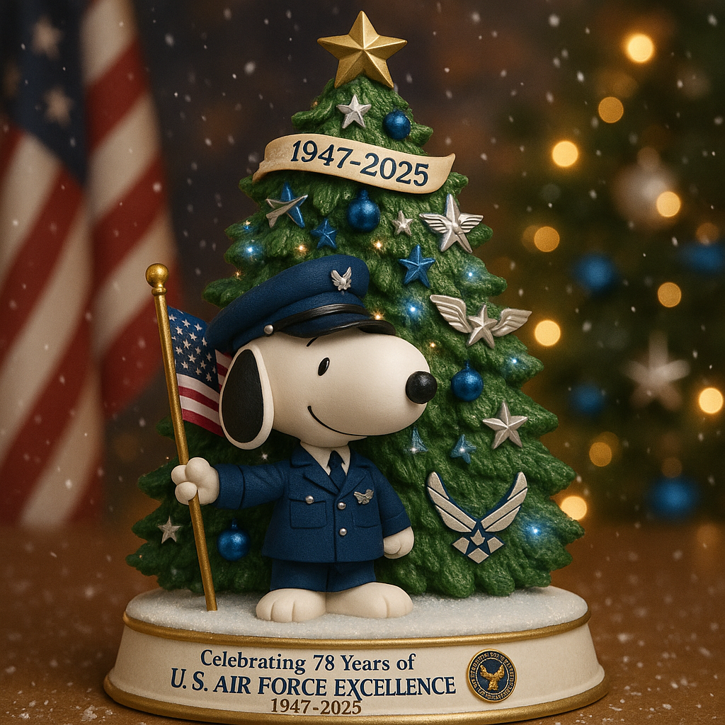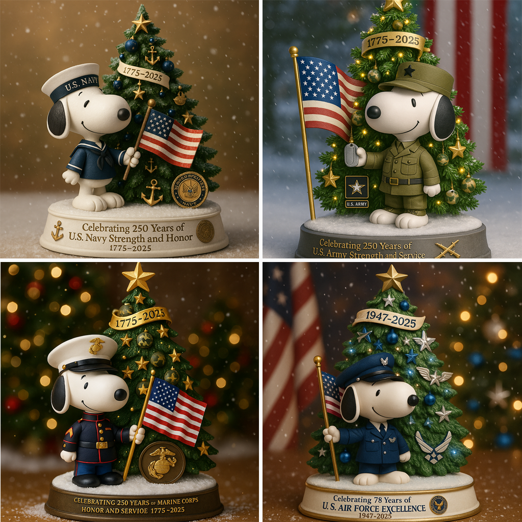 🎁Each piece honors the Air Force, Marine Corps, Army, and Navy, featuring Snoopy dressed in the iconic uniforms of each branch while proudly holding the American flag. These limited edition collectibles are a perfect tribute to the bravery and service of our heroes, beautifully blending holiday cheer with a deep respect for our military.✨