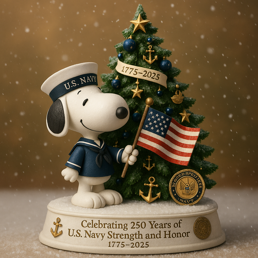 ✨The U.S. Navy's 250-year legacy is honored by Snoopy in his sailor uniform, proudly holding the American flag. This figurine stands as a testament to the Navy’s valor and its unwavering dedication to our nation.🎄
