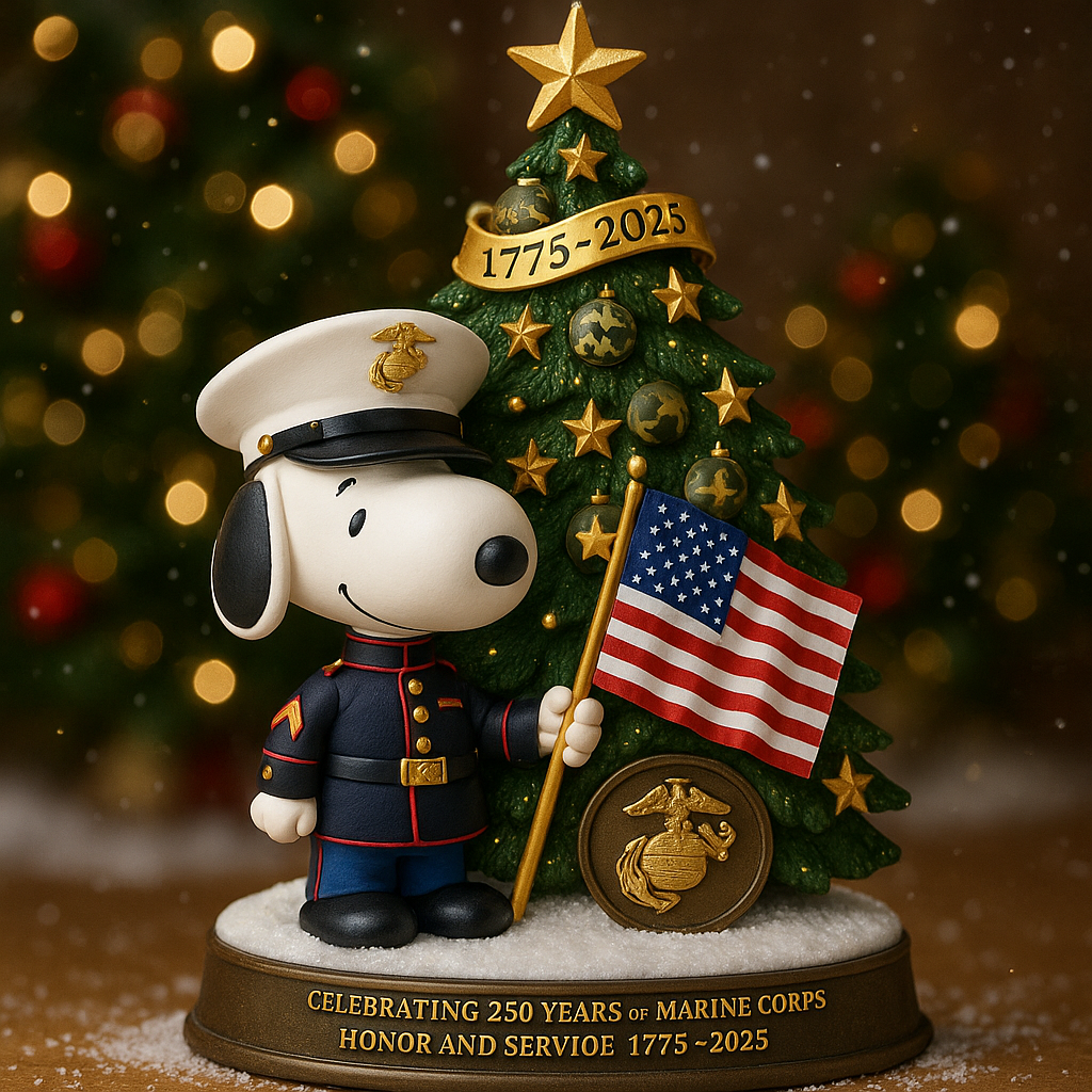 🎄Dressed in a Marine Corps uniform, this figurine celebrates 250 years of honor, courage, and commitment. Snoopy stands tall, holding the U.S. flag, and a medal of distinction to honor the Marines' enduring legacy.✨